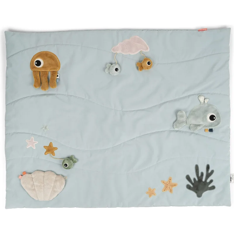 Mata sensoryczna Sea 100x80 cm Done by Deer to funkcjonalna przestrzeń do zabawy i odpoczynku dla najmłodszych dzieci. Model został zaprojektowany z myślą o bezpieczeństwie, komforcie i wspieraniu rozwoju sensorycznego malucha już od pierwszych miesięcy życia. Mata edukacyjna Done by Deer z kolekcji Sea doskonale sprawdzi się podczas codziennej zabawy, leżenia na brzuszku i poznawania świata poprzez dotyk, kolor oraz strukturę materiałów.
