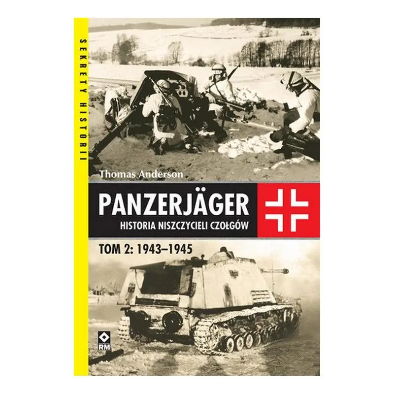 Historia niemieckich niszczycieli czołgów w okresie od błyskawicznych postępów Wehrmachtu na froncie wschodnim po upadek Trzeciej Rzeszy w 1945 roku. Od 1939 roku do końcowych miesięcy 1943 roku armia niemiecka odnosiła zwycięstwa na polach bitewnych w Europie, gdyż wojska stawiające jej opór nie miały odpowiedzi na jej nowatorską taktykę ścisłego współdziałania broni pancernej, artylerii i lotnictwa. Bardzo ważną rolę w tej nowej doktrynie militarnej odgrywały Panzerjäger – jednostki wyposażone zarówno w armaty holowane, jak i mobilne samobieżne działa przeciwpancerne. Niedługo po tym, jak armie niemieckie przekroczyły granice sowiecką w 1941 roku i napotkały groźne, bardzo nowoczesne na owe czasy czołgi przeciwnika – średnie T-34 i ciężkie KW-1 – musiały uciekać się do improwizacji w zmaganiach z nimi, bo ówczesna standardowa broń przeciwpancerna Wehrmachtu okazała się nieskuteczna w walce z tymi wozami bojowymi. Dało to impuls do szybkiego opracowania nowej armaty przeciwpancernej, 7,5 cm PaK 40, oraz wielu uzbrojonych w nią dział samobieżnych. Niniejsza książka to drugi tom historii Panzerjäger. Autor opisuje w nim ewolucję roli tych jednostek od chwili uderzenia na Związek Sowiecki w 1941 roku, poprzez okres zmagań z Brytyjczykami na północnoafrykańskiej pustyni, po coraz bardziej rozpaczliwe boje na froncie wschodnim z gigantyczną Armią Czerwoną, stopniowo spychającą siły niemieckie ku Berlinowi. Szczegółowo przedstawia typy uzbrojenia jednostek Panzerjäger, takie jak działo samobieżne Hornisse/Nashorn, wprowadzone z zadaniem powstrzymania potęgi sowieckich sił pancernych, oraz metody ich użycia na polach bitew w zmaganiach ze zdecydowanie przeważającym liczebnie nieprzyjacielem. Tekst wzbogacają niepublikowane wcześniej zdjęcia z lat wojny oraz oryginalne dokumenty historyczne – meldunki i raporty bojowe. Thomas Anderson – znawca niemieckiej broni pancernej z czasów II wojny światowej i autor poczytnych książek na jej temat. Nakładem Wydawnictwa RM ukazał pierwszy tom Panzerjäger. Historia niszczycieli czołgów Tom 1: 1939–1942 (2023), a także m.in. trzytomowa Niemiecka broń pancerna (2022), oraz monografie poświęcone legendarnym czołgom: Tygrys (2022), Panzer IV (2022), Pantera (2023), oraz kompendium Czołgi II wojny światowej (2022).