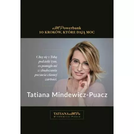 Tatiana Mindewicz-Puacz od wielu lat inspiruje i wspiera ludzi w dążeniach do poprawy jakości życia. Pomaga osiągać cele osobiste oraz zawodowe, zachęca, by traktować porażki jako cenne źródło informacji. Dobrze wie, jak ważne przy wprowadzaniu życiowych zmian jest traktowanie siebie z szacunkiem i myślenie o sobie dobrze. Nie nafaszerowana sztucznymi frazesami zarozumiałość, tylko ugruntowane poczucie własnej wartości. Świadomość, że każdy z nas ma wszystko co potrzebne, żeby marzyć i te marzenia spełniać, żeby radzić sobie z trudnościami i po swojemu przeżyć życie. Autorka podkreśla, że zmiana myślenia, która prowadzi do większej radości życia to proces. Sama przeszła tę długą i niełatwą drogę. Teraz chce się podzielić tym, co jej zdaniem wzmacnia najbardziej. 10 kroków, które dają moc to zbiór motywujących cytatów, rekomendacji i afirmacji. Jednocześnie miejsce na własne przemyślenia i notatki, które w opinii Tatiany bardzo pomagają w pracy nad sobą.