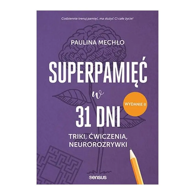 Miejsce, w którym odłożyliśmy kluczyki, daty urodzin krewnych i znajomych, terminy rozmaitych spotkań. Co łączy ze sobą te rzeczy? Otóż każdemu z nas przynajmniej raz zdarzyło się o nich zapomnieć. Trudno o bardziej irytującą sytuację, prawda? Na szczęście jest sposób na to, żeby podobne zdarzenia z naszego życia wyeliminować, a na pewno zminimalizować ryzyko ich wystąpienia. W książce "Superpamięć w 31 dni. Triki, ćwiczenia, neurorozrywki. Wydanie II", znajduje się szereg ćwiczeń przydatnych w treningu pamięci i koncentracji. Warto je przetestować, niezależnie od tego, czy chodzi o naukę do egzaminu, sprawne zarządzanie firmą, czy stresujący zawód, w którym istotne jest kontrolowanie wielu zadań jednocześnie, czy może po prostu o ćwiczenie i rozwijanie swojego umysłu. Wszystkim bez wyjątku trening superpamięci przygotowany przez Paulinę Mechło, renomowaną psycholog i neurokognitywistkę, się przyda i pozwoli poprawić umiejętność zapamiętywania oraz kondycję umysłu. W asortymencie księgarni psychologicznej Sensus znajdziesz inne książki autorstwa Pauliny Mechło. Wśród nich znajdują się takie tytuły jak "Trenuj swój intelekt. Rozwiń pamięć, koncentrację, kreatywność i uważność w 31 dni" czy "Superumysł. Myśl klarownie i skutecznie każdego dnia".