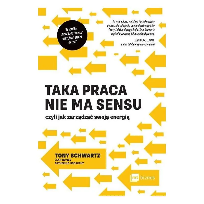 Mamy do dyspozycji coraz więcej informacji i zawieramy transakcje w coraz szybszym tempie. Mamy więcej klientów do obsłużenia, więcej maili wymagających odpowiedzi, więcej telefonów, więcej zadań, więcej spotkań… Cały czas się śpieszymy i pracujemy coraz więcej godzin, bo mamy poczucie, że inaczej nie nadążymy za wymaganiami i pozostaniemy w tyle. Wielu liderów i szefów zastanawia się, jak pomóc sobie i swoim podwładnym uzyskiwać większą efektywność, bo okazuje się, że dotychczasowe metody pracy nie są wystarczające. Nasze obecne podejście do pracy źle wpływa zarówno na nasze życie osobiste, jak i na ludzi, którymi zarządzamy, oraz na organizacje, w których pracujemy. Jak możemy to zmienić? Zarządzanie sobą i swoją energią w pracy Na podstawie odkryć wielu dziedzin nauki m.in. psychologii, medycyny i teorii organizacji oraz w oparciu o wieloletnią współpracę z takimi firmami, jak Google, Ford, Sony, Ernst & Young czy Shell, Tony Schwartz kreśli mapę ukazującą drogę do nowego sposobu pracy. Pokazuje, że wybitne wyniki wymagają nie tylko rytmicznego przechodzenia od pracy do odpoczynku, ale także czerpania energii z różnych źródeł. Najlepiej funkcjonujemy nie wtedy, gdy przed długi okres pracujemy na wysokich obrotach, jak komputer, lecz wtedy, gdy regularnie przechodzimy od zużywania do regenerowania energii związanej z każdą z czterech potrzeb: fizyczną, emocjonalną, umysłową i duchową. Taka praca ma sens! Jeśli więc chcesz uniknąć uczucia wypalenia czy permanentnego przemęczenia, które szkodzą twojej kreatywności, koncentracji, energii i pasji, zastosuj proste zasady organizacji czasu i życia opracowane przez Schwartza i uzyskaj większą wydajność, zarówno w pracy, jak i poza nią. Dzięki lekturze tej książki przekonasz się, że satysfakcja, poczucie i świadomość celu może iść w parze z wysokimi wynikami, umiejętnością regeneracji i odpoczynku przy zachowaniu idei work life balance. Dzięki lekturze tej książki: na poziomie zarządzania sobą dowiesz się, w jaki sposób tworzyć codzienne rytuały, które: - intensywny wysiłek równoważą regularną regeneracją, - wyczerpanie emocjonalne niwelują ćwiczeniami zapewniającymi większą odporność, - krótkotrwałe skupienie na najpilniejszych sprawach zamieniają w myślenie bardziej kreatywne i strategiczne, - krótkowzroczne zaangażowanie w doraźne wyniki zastępują przestrzeganiem wartości prowadzącym do wyższego dobra; na poziomie zawodowym poznasz nowe praktyki, kierunki działania i przekazy kulturowe, które z powodzeniem wykorzystują takie firmy, jak jak Ernst & Young, Google, Ford czy IBM. Dostaniesz praktyczne, sprawdzone strategie poprawiające skuteczność i wydajność pracy. Zacznij dbać o własne potrzeby, bo taka (wyniszczająca) praca nie ma sensu niezależnie od tego, czy pracujesz w korporacji, jesteś samozatrudnionym, czy jesteś przedsiębiorcą zatrudniającym innych. *** W pierwszych latach bycia przedsiębiorcą pracowałem po 14 godzin dziennie. Dziś pracuję maksymalnie sześć. Okazuje się, że idą za tym… wyższe zarobki (nie mówiąc już o podniesieniu jakości życia). Skoro więc są narzędzia, żeby pracować mniej, a zarabiać więcej, szaleństwem byłoby nie skorzystać. Książka Tony’ego Schwartza jest najlepszym, jakie znam. Serdecznie polecam! JAKUB B. BĄCZEK, trener mentalny olimpijczyków *** TONY SCHWARTZ jest założycielem i prezesem firmy Energy Project, która pomaga instytucjom i osobom indywidualnym w wykorzystywaniu odkryć naukowych do uzyskiwania poprawy zaangażowania, koncentracji, wydajności i wyników. Wraz z Jimem Loehrem napisał bestseller The Power of Full Engagement, a także inne książki, między innymi What Really Matters: Searching for Wisdom in America. JEAN GOMES jest prezesem Energy Project Europe. CATHERINE McCARTHY jest dyrektor wykonawczą Energy Project.