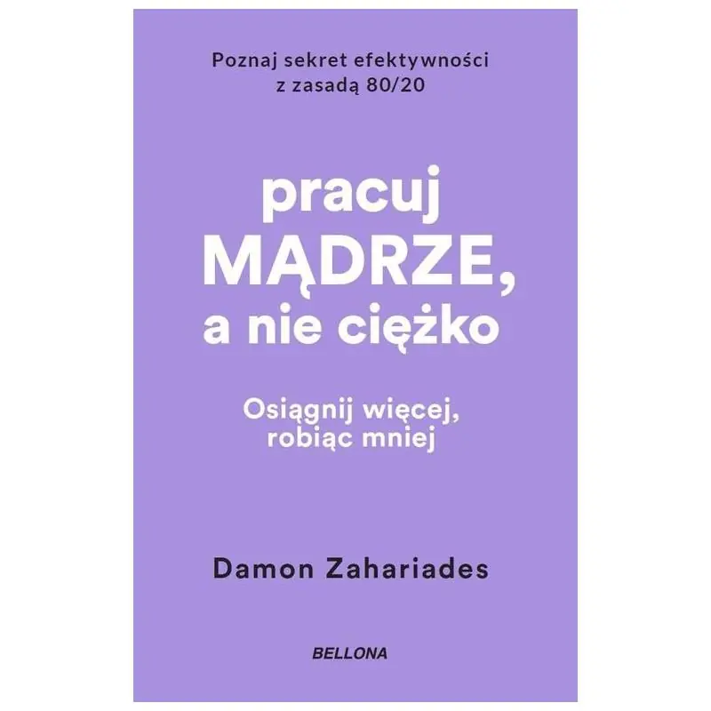 Czy zdarzyło ci się pracować cały dzień, a pod wieczór mieć poczucie, że niewiele udało ci się zdziałać? Bywa, że łatwo się rozpraszasz, a twój mózg nie jest w stanie wykrzesać z siebie kreatywnych rozwiązań? Czujesz, że blokuje cię stres i strach przed podjęciem złych decyzji? Zajmujesz się drobiazgami i masz wrażenie, że nie masz czasu na to, co się naprawdę liczy? Jesteś sfrustrowany i zniechęcony brakiem postępów? Większość ludzi poświęca mnóstwo czasu na zadania o niewielkiej wartości. Uniemożliwia im to realizację naprawdę ważnych projektów. Nie dziwi więc, że tak wiele osób ma wrażenie, że w wyścigu z czasem stoją w miejscu. Ta książka pomoże ci to zmienić – bez rozciągania doby o dodatkowe godziny, rezygnowania z pracy ani poświęcania swojego życia towarzyskiego. Jesteś w stanie zrobić więcej mniejszym wysiłkiem, stosując zasadę 80/20. Dowiedz się: • jak rozwijać swoją karierę bez marnowania czasu na trywialne zadania, • jak zarządzać życiem domowym przy minimalnym nakładzie czasu i wysiłku, • jak budować relacje, które wzbogacają twoje życie (a z pozostałych zrezygnować, • jak zrobić formę bez szalonych diet i ćwiczeń, • jak poprawić swoje finanse w kilka minut miesięcznie, • jak efektywniej się uczyć i lepiej zapamiętywać, • jak szybko rozwijać swój biznes, nie wypruwając sobie żył.
