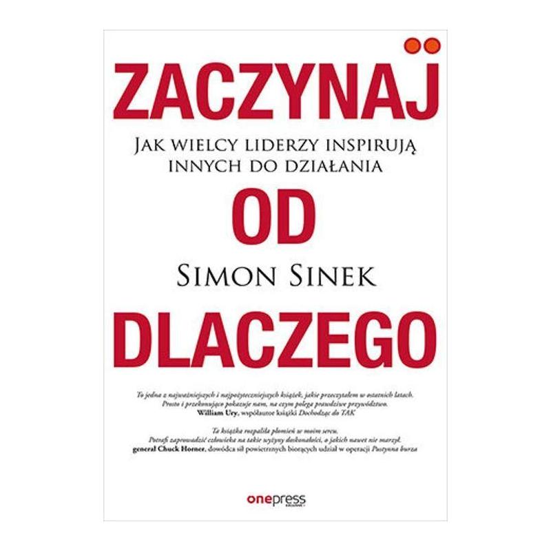 Droga na szczyt. Czy chodzi tylko o sukces? >> Zrób to inaczej niż inni Każdy człowiek i każda organizacja mogą wyjaśnić, CO robią. Niektórzy z nas potrafią pokazać, CZYM różnią się od innych. Jednak tylko nieliczni są w stanie jasno wyartykułować, DLACZEGO robią to, co robią. DLACZEGO nie ma nic wspólnego z finansami i zyskami. DLACZEGO jest tym, co inspiruje Ciebie i Twoje otoczenie. Otwórz tę książkę i odnajdź samą kwintesencję inspiracji. Przewróć kilka stron i poznaj prosty wzór, sposób myślenia, działania i komunikowania się, dzięki któremu przywódcy są w stanie skutecznie zainspirować swoje otoczenie. Wczytaj się w historie Martina Luthera Kinga juniora czy Steve'a Jobsa i przekonaj się, że wszyscy liderzy, którzy kogokolwiek inspirują, myślą, działają i komunikują się z innymi z pominięciem ogólnodostępnych schematów. Każdy z nas może zdobyć tę umiejętność. Przy odrobinie dyscypliny każdy lider lub organizacja mogą skutecznie oddziaływać na innych. Przeczytaj wszystkie porywające opowieści i naucz się być skutecznym przywódcą. Przyciągnij do siebie ludzi i trwale zmień oblicze biznesu. Poznaj siłę DLACZEGO! Książka ta jest przeznaczona dla tych, którzy chcą inspirować innych i tych, którzy szukają kogoś, kto by ich zainspirował.