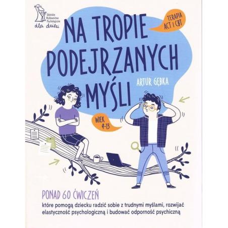 W naszej głowie nieustannie pojawia się mnóstwo myśli. Niektóre z nich sprzyjają działaniu i lepszemu samopoczuciu oraz dodają witalności, z kolei inne mogą ranić, obniżać samoocenę, zachęcać do wycofania. Dotyczy to również dzieci.Jak rozpoznać, które myśli nam służą, a które nie? W jaki sposób dzięki myślom budować odporność psychiczną oraz życzliwą postawę wobec siebie i wobec innych? Na te pytania odpowiada książka Na tropie podejrzanych myśli.Została ona napisana z myślą o dzieciach w wieku 9-13 lat. W tym wieku utrwalają się przekonania dotyczące siebie, innych ludzi i świata. Dzieci zaczynają coraz surowiej myśleć o sobie, opatrując siebie etykietami: „jestem głupi”, „do niczego się nie nadaję”, „nikt mnie nie lubi”.Ćwiczenia zawarte w książce, oparte na technikach terapii poznawczo-behawioralnej oraz terapii akceptacji i zaangażowania, pomogą dziecku uwolnić się od myśli, które mu nie służą, by budować obraz siebie w sposób życzliwy i pomocny.Bohaterowie książki mają do rozwiązania sześć zagadek związanych z podejrzanymi myślami. Myśli te stanęły na drodze dzieci, utrudniając im realizację pasji i budowanie relacji.Przyłączając się do biura detektywistycznego Maksa i Toli, twoje dziecko: – nauczy się zauważać swoje myśli i rozpoznawać ich rodzaje; – zrozumie, czym są myśli i co można z nimi zrobić, by czuć się lepiej; – przestanie podążać za niepomocnymi myślami; – rozwinie samowspółczucie oraz nauczy się akceptować siebie i innych; – rozwinie elastyczność psychologiczną niezbędną do budowania odporności psychicznej; – wzmocni swoją samoocenę.