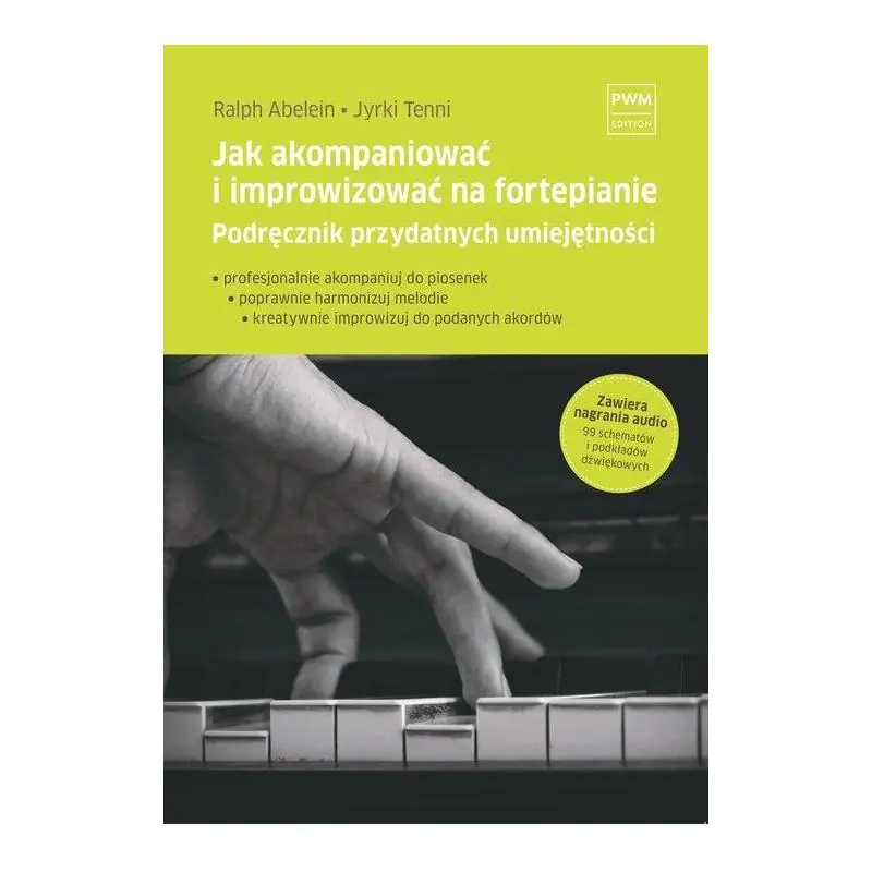 Książka ta przeznaczona jest dla pianistów, którzy chcą nauczyć się improwizacji i tworzenia akompaniamentu. Można ją wykorzystać do samodzielnej nauki, jako materiał dydaktyczny w szkołach muzycznych lub na studiach wyższych, kształcących przyszłych nauczycieli gry na fortepianie. Materiał zawarty w tej publikacji może stanowić impuls do swobodnej gry zarówno dla amatorów posiadających elementarną wiedzę z zakresu teorii muzyki i podstawowe umiejętności pianistyczne, jak również dla profesjonalistów z klasycznym wykształceniem. Zawartość • ponad 50 wzorów akompaniamentów w różnych stylach, takich jak pop/rock, swing, country, tango, cza-cza, bossa nova itp.; • ćwiczenia rozwijające poczucie rytmu, umiejętność słuchania i improwizacji oraz niezależność rąk; • akordy i pochody akordowe; • pomysły na improwizację na podstawie pochodu akordów; • wskazówki przydatne przy harmonizacji melodii; • wyjątkowy przewodnik, który krok po kroku wskaże, jak zagrać melodię razem z dźwiękami akordowymi i linią basową.