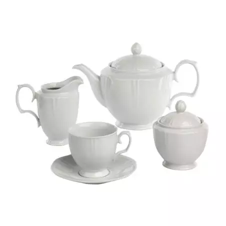 - forma oktagonu oraz delikatne żłobienia na porcelanie,