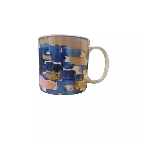 Kubek ma pojemność 400 ml, co oznacza, że jest wystarczająco pojemny, aby pomieścić większą ilość płynu. Jego designerska forma, z geometrycznymi wzorami w odcieniach pastelowych kolorów przypomina szkice zrobione akwarelą.