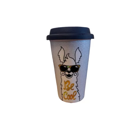 Kubek z pokrywką silikonową z lamą