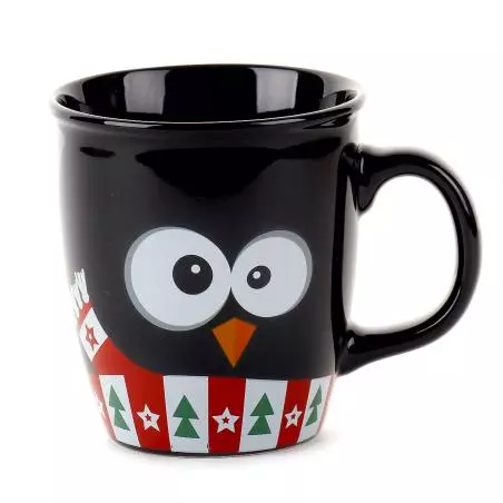 - ozdobiony nadrukiem oczu i dziubka pingwina oraz szalika