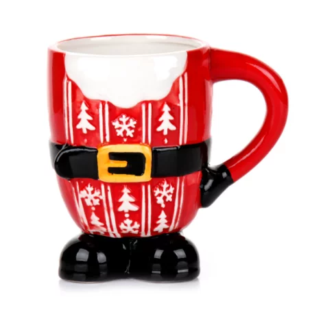 - kubek przedstawiający strój Świętego Mikołaja w tradycyjnych czerwono-białych barwach