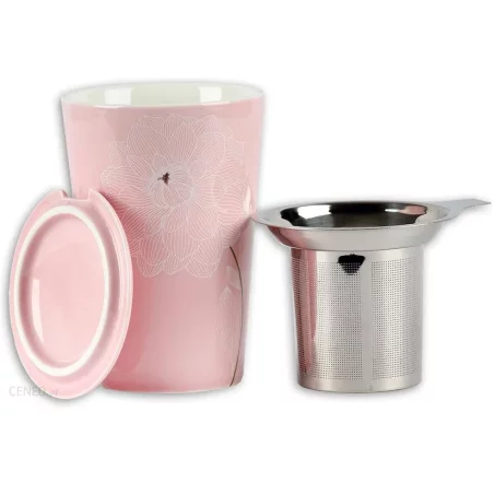 KUBEK PORCELANOWY Z ZAPARZACZEM RÓŻOWY 400 ML