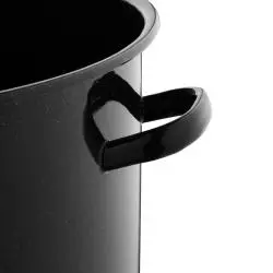 Gładki garnek kuchenny w powłoce z emalii jest wygodny i praktyczny w użytkowaniu. Dwa emaliowane uchwyty pozwalają bezpiecznie przenosić garnek wraz z zawartością. W komplecie znajduje się także doskonale dopasowana metalowa pokrywka, która również pokryta została emalią.