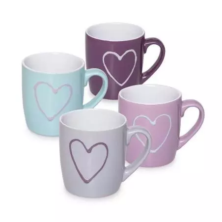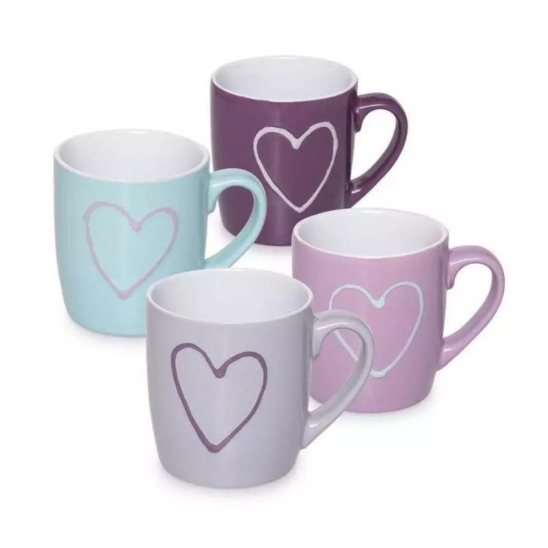 - Zestaw czterech dekorowanych kubków o pojemności 350 ml.