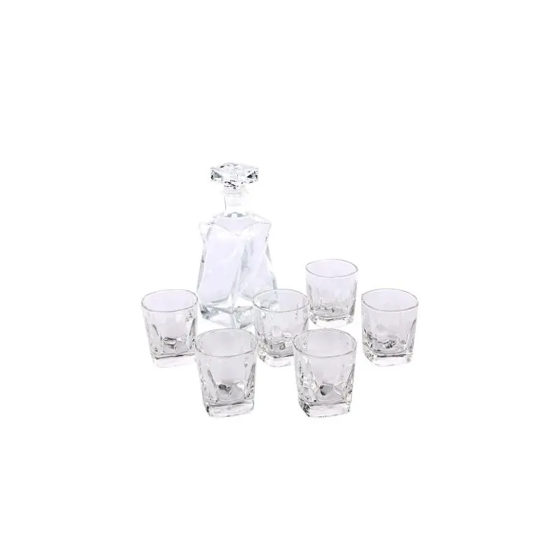 Szukasz pomysłu na prezent? Trafiłeś idealnie. 7 elementowy zestaw do whisky zapakowany w ozdobny kartonik to świetna propozycja na prezent. W skład zestawu wchodzi karafka o pojemności 750ml zdobiona pięknymi i precyzyjnie wykonanymi szlifami o nieregularnym kształcie oraz 6 szklanek do whisky 280ml posiadających nowoczesny geometryczny kształt. Przezroczyste szkło, pięknie załamujące światło sprawia, że każdy napój wygląda w nim naprawdę wyjątkowo. Higieniczną, gładką powierzchnię łatwo utrzymamy w czystości, szkło bez przeszkód można myć w zmywarkach.