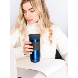 Kubek Termiczny Contigo Byron Blue 470 ml to eleganczny i praktyczny model dla osób ceniących gorącą kawę lub herbatę w drodze. Wykonany z wysokiej jakości stali nierdzewnej, gwarantuje długotrwałe utrzymanie temperatury oraz całkowitą szczelność.