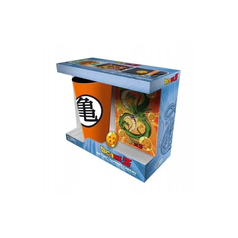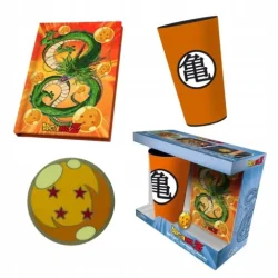 W zestawie znajduje się notes, szklanka i przypinka. Każda z tych rzeczy może towarzyszyć na co dzień fanowi Dragon Ball.