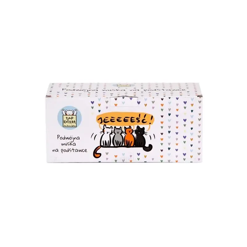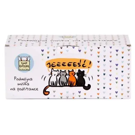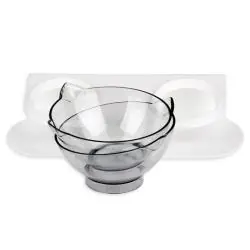 w skład zestawu wchodzą: dwie miseczki, podstawka, 4 naklejki antypoślizgowe