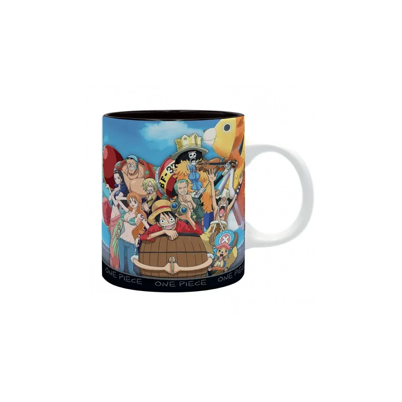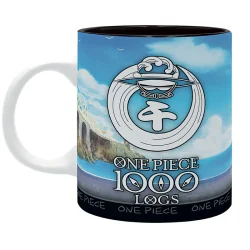 Kubek 1000 Logs Group o pojemności około 320 ml. który posiada na sobie nadruk z wizerunkiem głównych bohaterów anime One Piece.