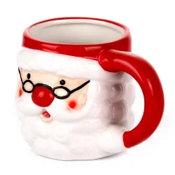 - kubek przedstawiający twarz Świętego Mikołaja w czerwonej czapce, białej brodzie i okularach