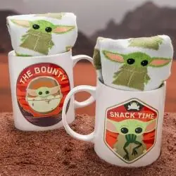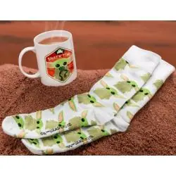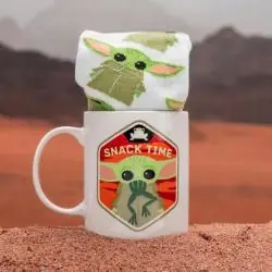Ulubieniec internetu - Baby Yoda - jest głównym bohaterem tego zestawu. Set składa się z ceramicznego kubka o pojemności 300 ml, oraz pary równie uroczych skarpet. To ładne i praktyczne gadżety dla wszystkich wielbicieli kultowego już bohatera, jakim jest Baby Yoda. Nawet w the Sims 4 da się kupić jego figurkę, to czemu Ty miałabyś / miałbyś nie sprezentować sobie takiego zestawu?