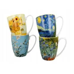 Zestaw eleganckich, porcelanowych kubków inspirowanych obrazami Vincenta Van Gogha to idealne połączenie sztuki oraz funkcjonalności. Każdy z nich jest wyjątkowy i przenosi fragment znanego dzieła do codziennego użytku. Stanowi idealny prezent dla osób ceniących sobie praktyczne dodatki, elegancję oraz artystyczny design.