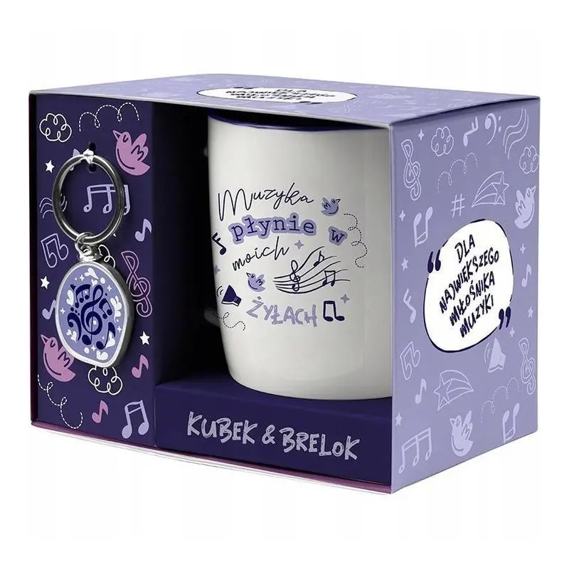 Prezent dla Miłośnika Muzyki Hobby to ważna część życia, która pozwala się zrelaksować i rozwijać. Zestaw prezentowy dla Miłośnika Muzyki to idealny upominek dla osób, dla których muzyka jest pasją. W zestawie znajduje się ceramiczny kubek o pojemności 330 ml z dedykowanym napisem, który można myć w zmywarce, oraz personalizowany brelok