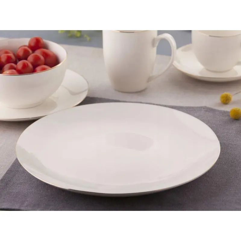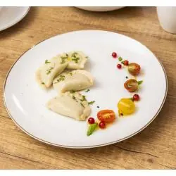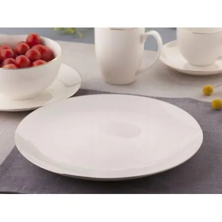 Talerz z kolekcji Bella Złota Linia łączy w sobie elegancję i praktyczność, pozwalając stworzyć wyjątkową atmosferę przy stole. Dzięki ponadczasowemu designowi doskonale komponuje się z różnymi aranżacjami wnętrz – od klasycznych po nowoczesne.