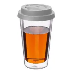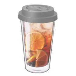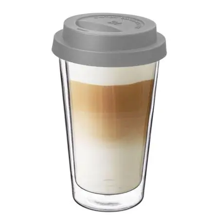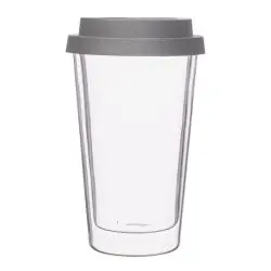 Altom Design prezentuje elegancki kubek termiczny ze szkła borokrzemowego, wyposażony w silikonową pokrywkę z ustnikiem. Dzięki podwójnym ściankom doskonale utrzymuje temperaturę napojów, jednocześnie chroniąc dłonie przed poparzeniem. Idealny zarówno do gorącej kawy i