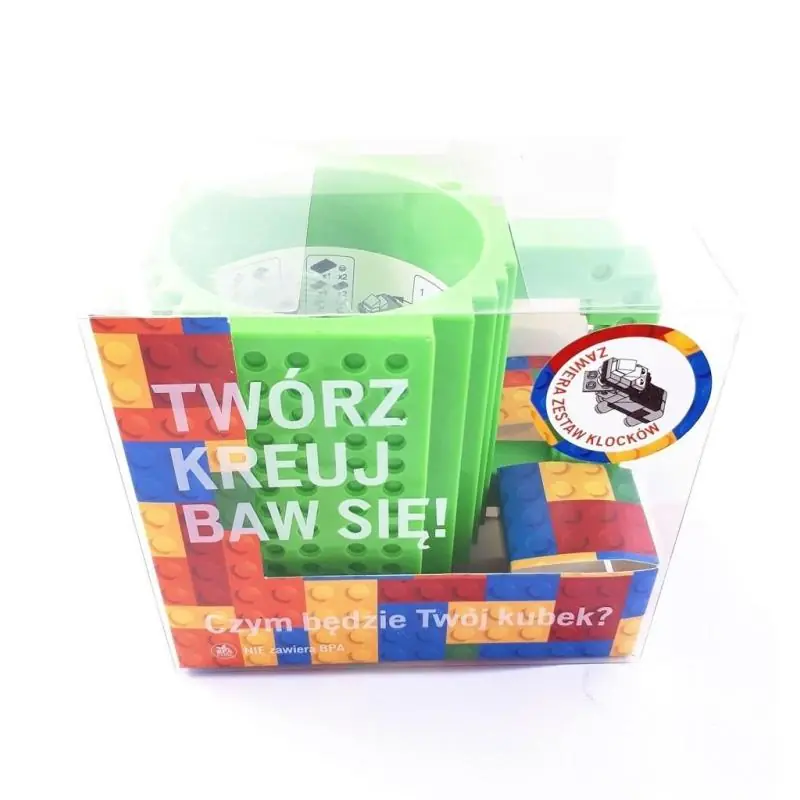 Kubek klockowy zielony 350 ml to innowacyjny i funkcjonalny kubek dla dzieci z zestawem klocków, który łączy codzienne użytkowanie z kreatywną zabawą. Dzięki unikalnej konstrukcji wykonanej z tworzywa PP produkt wspiera rozwój wyobraźni i sprawności manualnej dziecka.