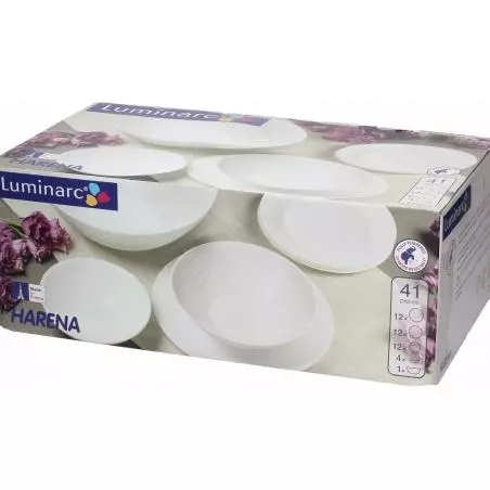 Komplet obiadowy Harena 41-elementowy, w kolorze białym, marki Luminarc.