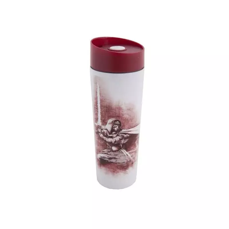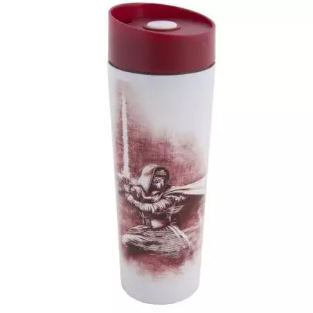 Kubek termiczny Star Wars Kylo Ren wykonany jest ze stali nierdzewnej. Posiadają bardzo praktyczny automatyczny korek typu Click-Clack służący do otwierania i zamykania oraz wyprofilowany kształt dla wygodnego trzymania w dłoni.