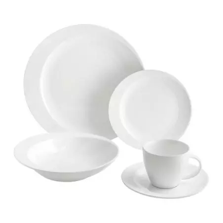 30-elementowy komplet obiadowy Tiffany został wykonany z wysokiej jakości porcelany. Linia naczyń Tiffany to połączenie nutki klasyki oraz nowoczesności. Okrągły kształt talerzy z ciekawym rantem oraz delikatnymi prążkami dodaje finezji i delikatności. Wzmacniana porcelana charakteryzuje się większą wytrzymałością na obtłuczenia oraz