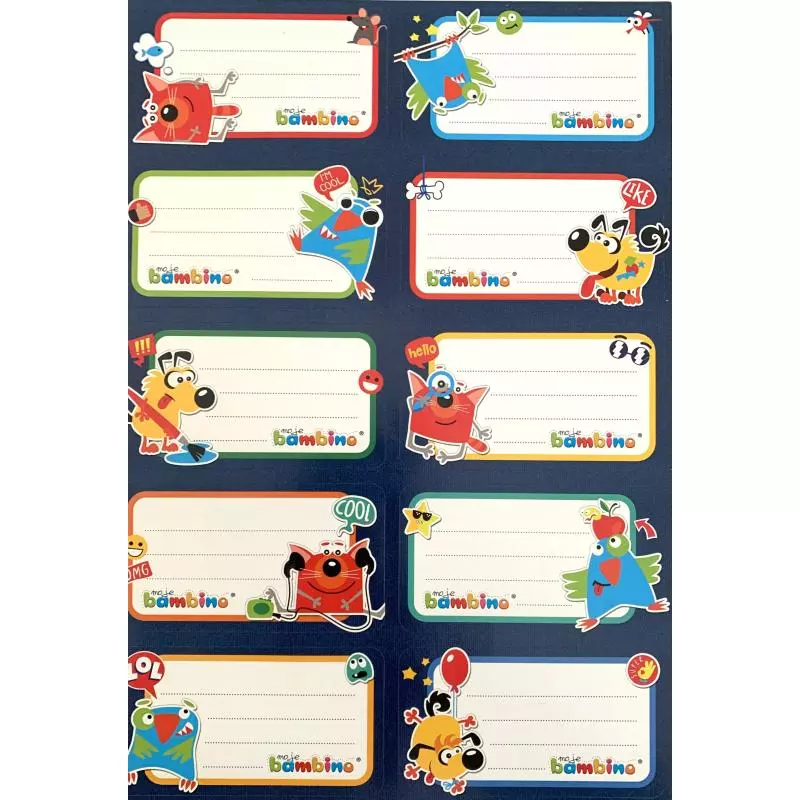 Wybierz zestaw naklejek Bambino i dodaj zeszytom oraz przyborom szkolnym wyjątkowego, kolorowego charakteru. To praktyczny i kreatywny dodatek do codziennej nauki.