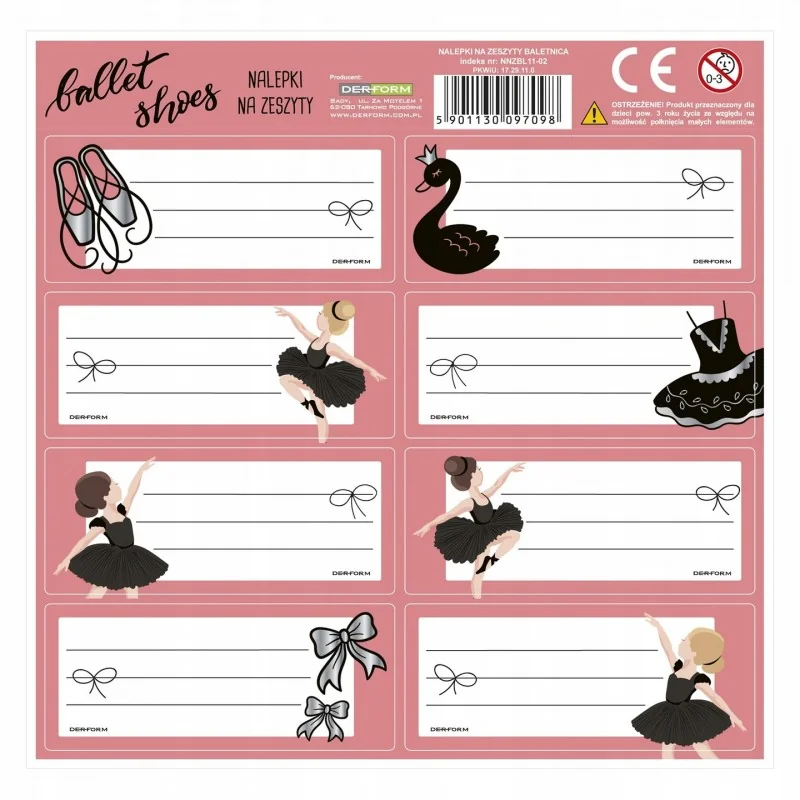 NAKLEJKI NA ZESZYTY BALETNICE 3 ARKUSZE DERFROM