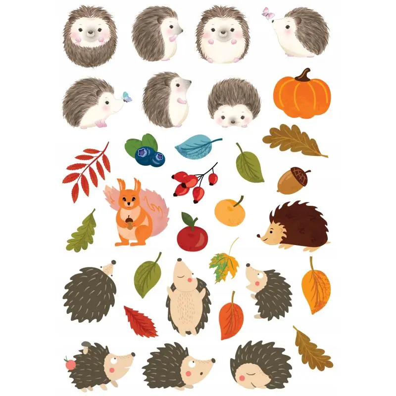 Zestaw naklejek komplet Jeż Jeżyki Jesień to atrakcyjny zestaw dekoracyjny dla dzieci, który pozwala w prosty sposób ozdobić zeszyty, kartki, planery oraz projekty plastyczne. Kolorowe naklejki przedstawiają urocze jeżyki i motywy jesienne, wspierając kreatywność i