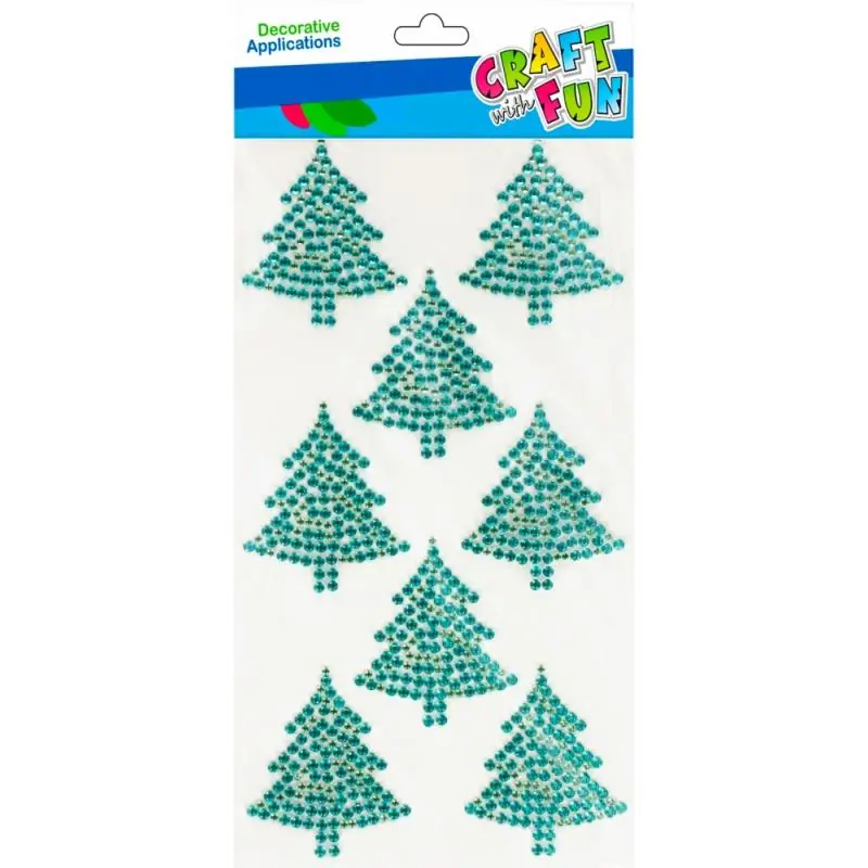 Craft with Fun Samoprzylepne Kryształki Choinka 8 szt. to zestaw dekoracyjnych elementów w kształcie choinki, przeznaczonych do ozdabiania prac plastycznych, kartek świątecznych, albumów scrapbookingowych oraz projektów DIY. Dzięki warstwie samoprzylepnej aplikacja jest szybka i wygodna, bez konieczności użycia dodatkowego kleju.