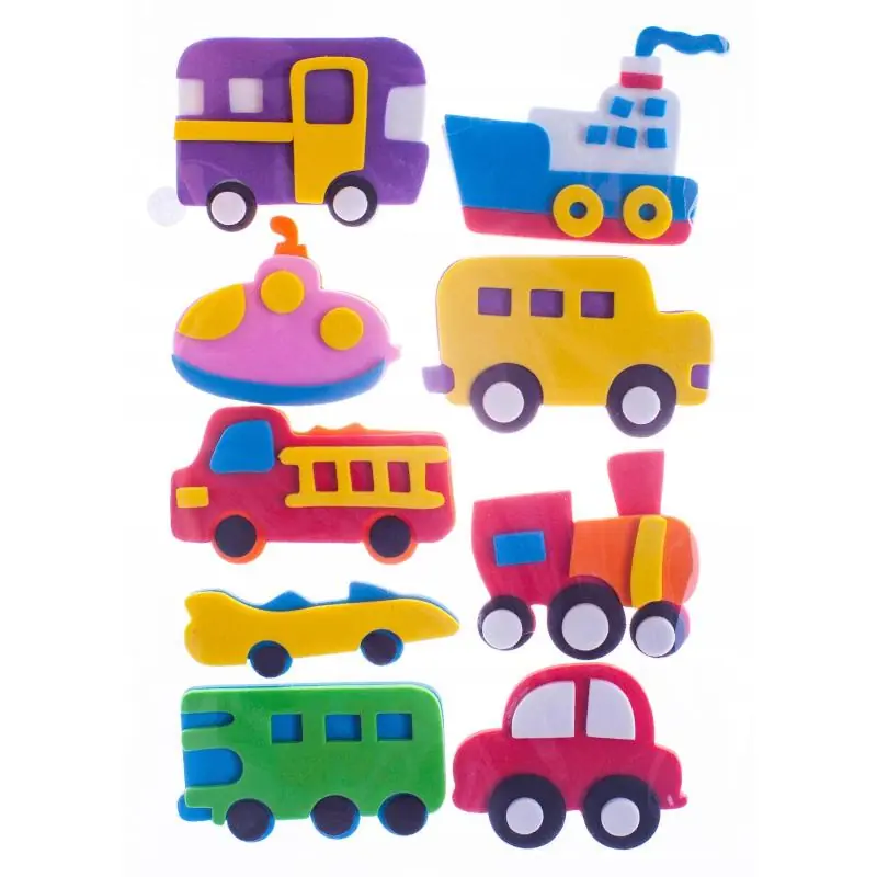 Naklejki dekoracyjne piankowe Samochody 10 szt. Astra to kolorowy zestaw przestrzennych ozdób, który doskonale sprawdzi się podczas zabaw kreatywnych, zajęć plastycznych oraz dekorowania zeszytów i kartek okolicznościowych. Motyw samochodów przyciąga uwagę dzieci
