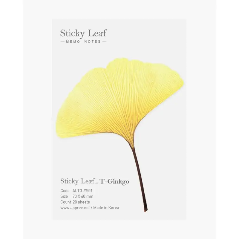 Karteczki samoprzylepne Miłorząb S 70x40 mm Appree to stylowe karteczki samoprzylepne inspirowane naturą, które doskonale sprawdzają się jako zakładki indeksujące oraz krótkie notatki. Dzięki charakterystycznemu kształtowi liścia miłorzębu wprowadzają estetykę i porządek do codziennej pracy z dokumentami, książkami czy planerami.