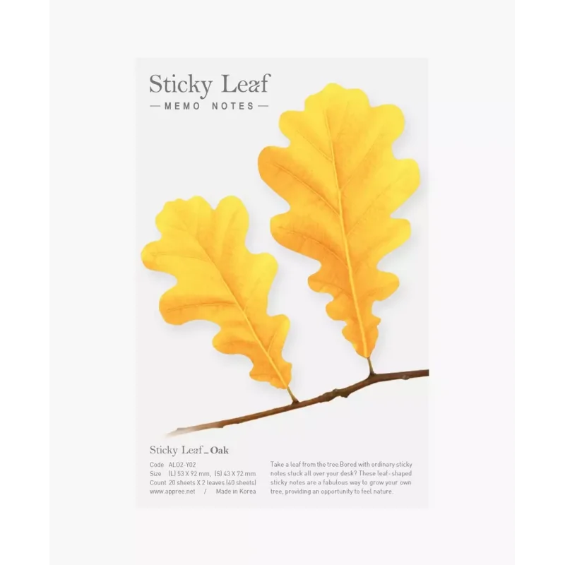 Karteczki samoprzylepne Dąb żółty M Appree to praktyczne i estetyczne karteczki samoprzylepne, inspirowane naturalnym kształtem liści dębu. Idealnie sprawdzają się jako zakładki indeksujące oraz notatki w książkach, planerach i dokumentach, wprowadzając porządek i dekoracyjny akcent w codziennej pracy.