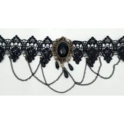 Stylowy naszyjnik choker koronkowy z ozdobnymi koralikami to idealny dodatek do halloweenowej stylizacji w stylu gotyckim, wiktoriańskim lub alternatywnym. Starannie wykonany z czarnej koronki, z elegancko opadającymi koralikami, podkreśla charakter kostiumu i dodaje wyrazistości każdej