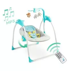 Posiada tryb wykrywania głosu. Huśtawka uruchamia się automatycznie po wykryciu np. płaczu dziecka. Prędkość regulowana w 8 poziomach. Dodatkowo dziecko ukoją standardowe melodie uspakajające. Absorbująca uwagę karuzelka z trzema uroczymi pluszowymi misiami pomaga rozwijać sprawność manualną.