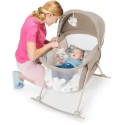 Kinderkraft LOVI to lekkie łóżeczko, kołyska i bujaczek w jednym. Składa się i rozkłada w pięć sekund, a wbudowana moskitiera z budką chroni malucha przed owadami, wiatrem i słońcem, także na tarasie czy podczas wakacji.