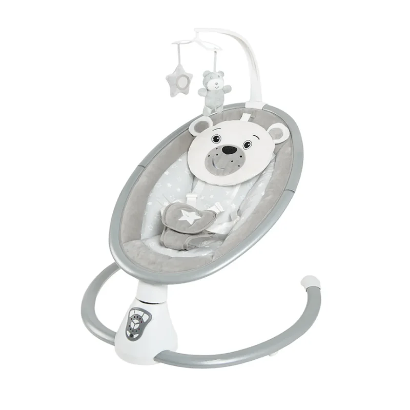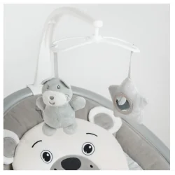 Smiki Miś łączy funkcję bujaczka oraz leżaczka, oferując automatyczne kołysanie, kojące melodie i bezpieczne miejsce odpoczynku dla noworodka od pierwszych dni życia do momentu osiągnięcia wagi 9 kg.