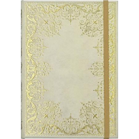 Mały notatnik firmy Peter Pauper Press - Ivory. Okładka w kolorze kości słoniowej. Każdy notes tej marki jest wyjątkowym dziełem sztuki. Bogactwo wzorów i kolorów pozwala wybrać ten idealny. Notes idealnie nadaje się na prezent. Szczegóły: - okładka sztywna, wytłaczana, opalizująca - złocone brzegi stron - notes jest zszywany, a po otwarciu leży płasko - ułatwia to pisanie - zamknięcie na gumkę - na końcu koperta na luźne notatki, wizytówki, itp. - kartki wykonane z wysokiej jakości papieru bezkwasowego - niezwykle trwałe, z cechami gwarantującymi długi czas użytkowania - gramatura 120 gsm - zadruk w linie dwustronny - wymiary: 12,7 cm x 17,8 cm - format zbliżony do B6 - ilość stron: 160