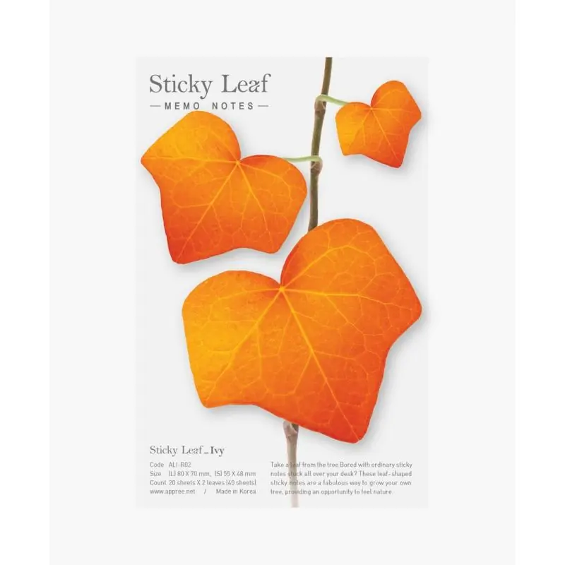 Appree Karteczki samoprzylepne Bluszcz czerwony M 2 x 20 kartek to dekoracyjne karteczki inspirowane naturalnym motywem liści bluszczu. Intensywny czerwony kolor nadaje notatkom wyrazistości i ułatwia szybkie odnalezienie ważnych informacji. Zestaw zawiera dwa bloczki po 20 kartek, co