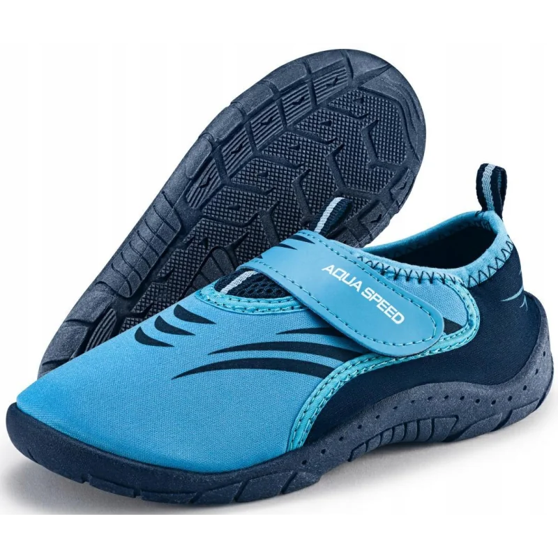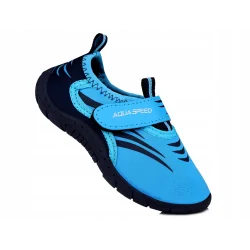 Buty do wody Aqua Speed 27E w kolorze niebieskim, rozmiar 31 to praktyczne i wygodne obuwie stworzone z myślą o dzieciach aktywnie spędzających czas nad wodą. Wyposażone w system zapięcia na rzep, zapewniają szybkie i pewne dopasowanie. Idealne do pływania, zabawy na plaży czy podczas