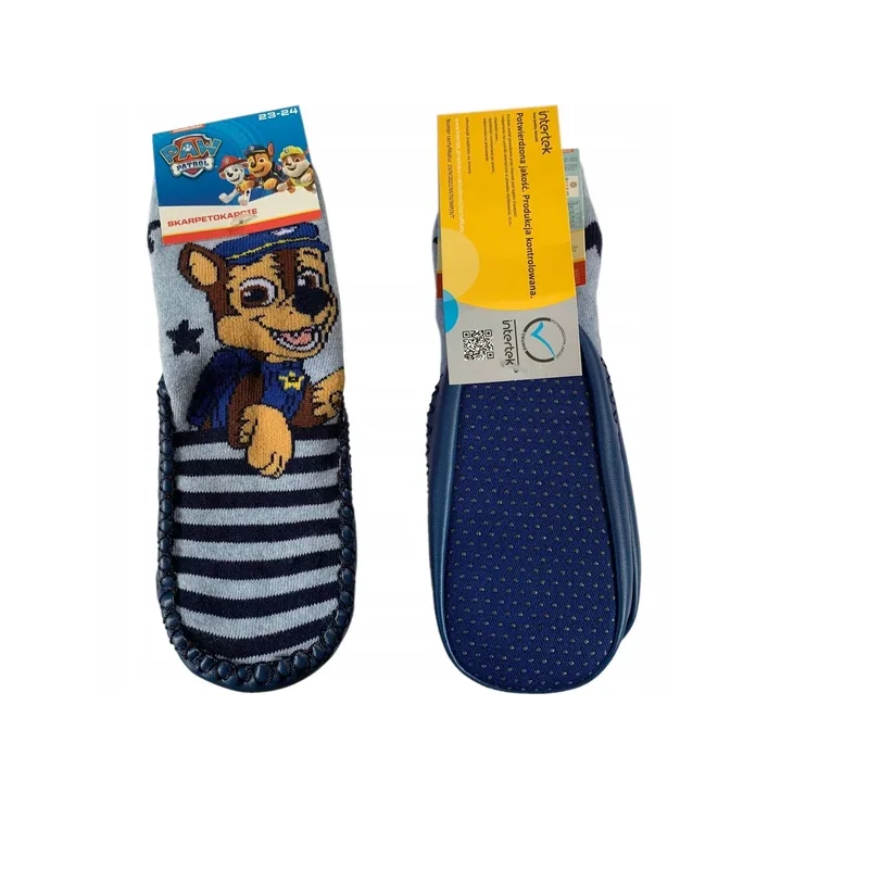 Skarpeto-kapcie antypoślizgowe Psi Patrol rozmiar 23/24 to praktyczne obuwie domowe dla najmłodszych, które łączy wygodę skarpet i funkcjonalność kapci. Dziecięce skarpetokapcie Psi Patrol zapewniają ciepło, bezpieczeństwo i komfort podczas codziennych aktywności w domu, przedszkolu lub żłobku.