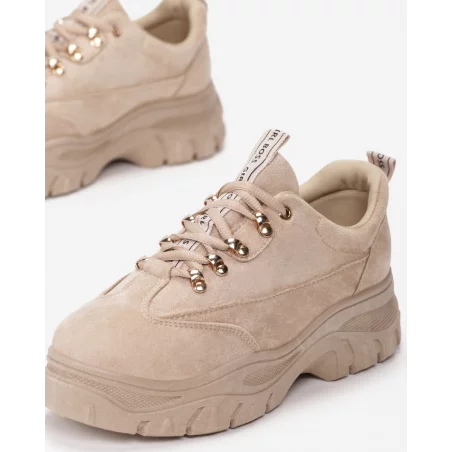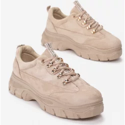 Sneakersy damskie sznurowane na grubej podeszwie.