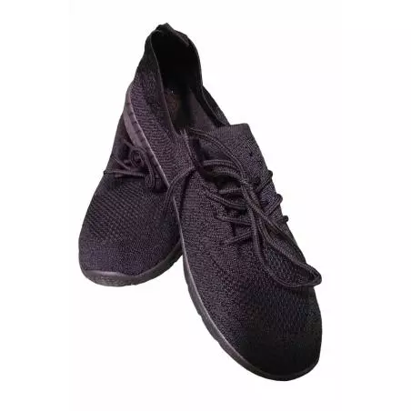 Czarne Sportowe Lephanthe wsuwane, osadzone na grubej podeszwie z zaokrąglonymi żłobieniami. Cholewka sięgająca poniżej kostki. Wokół górnej krawędzi delikatna lamówka, z tyłu mała pętelka. Wykonane z materiału tekstylnego, urozmaicone perforowaną siateczką i wstawkami o różnej fakturze. Z przodu ozdobne sznurowanie. Sprawdzą się