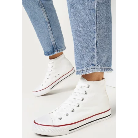 Trampki Nonagina o klasycznym fasonie, na płaskiej podeszwie z czarną lamówką. Z okrągłym, usztywnionym noskiem powleczonym gumową wstawką. Cholewka sięgająca za kostkę, ozdobiona została delikatnymi przeszyciami. Z przodu wiązane na płaskie sznurówki. Wykonane z materiału tekstylnego. Uniwersalne trampki to must-have w Twojej szafie!